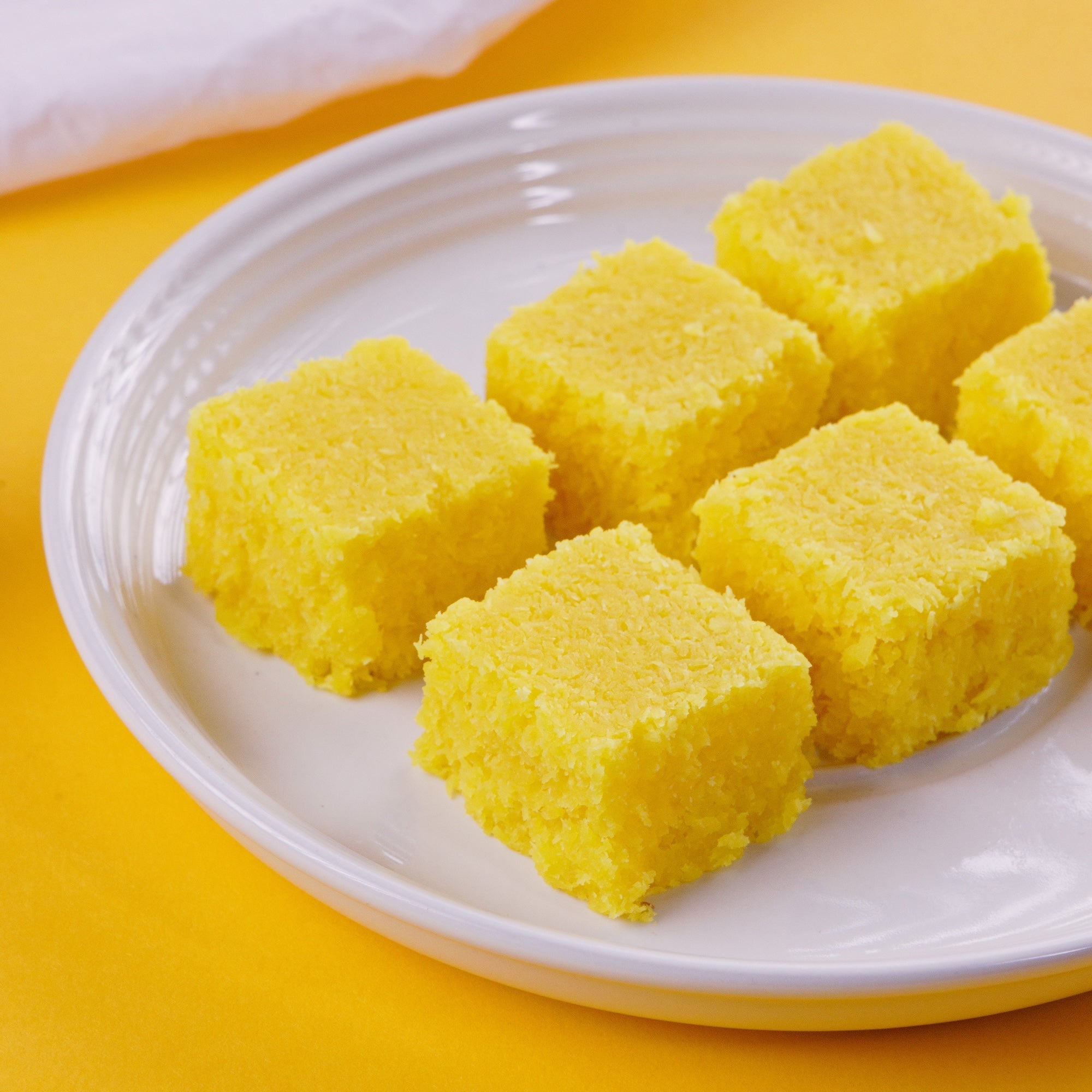 Savour the authentic taste of Coconut Burfi, a classic South Indian sweet. This indulgent delicacy, made with Desiccated Coconut, Khova & Ghee, melts in your mouth, leaving behind a sweet flavour that is perfect for festive occasions or as a special treat.